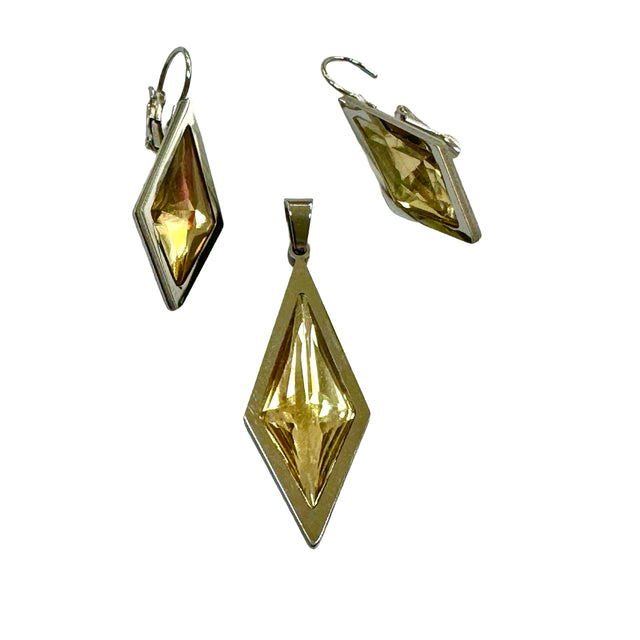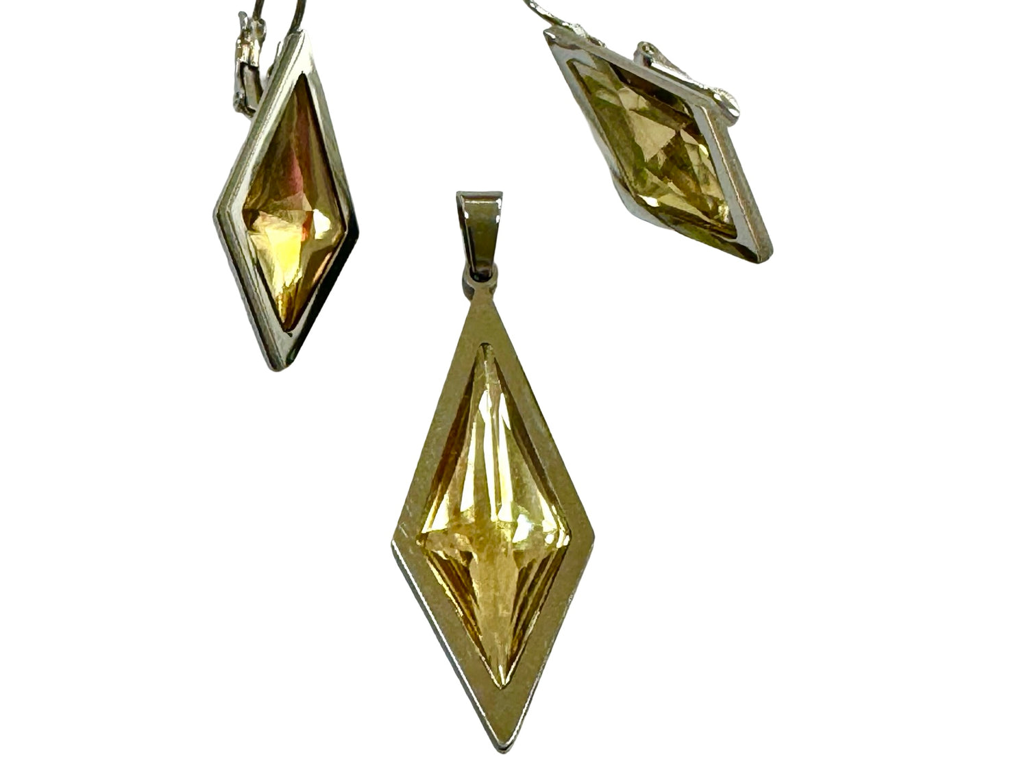 CONJUNTO DE CARAVANAS Y COLLAR CON DIJE EN ACERO PARA DAMA CON PIEDRA