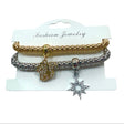 PULSERA DE FANTASIA MULTIPLE DORADAS Y PLATEADAS CON DIJES